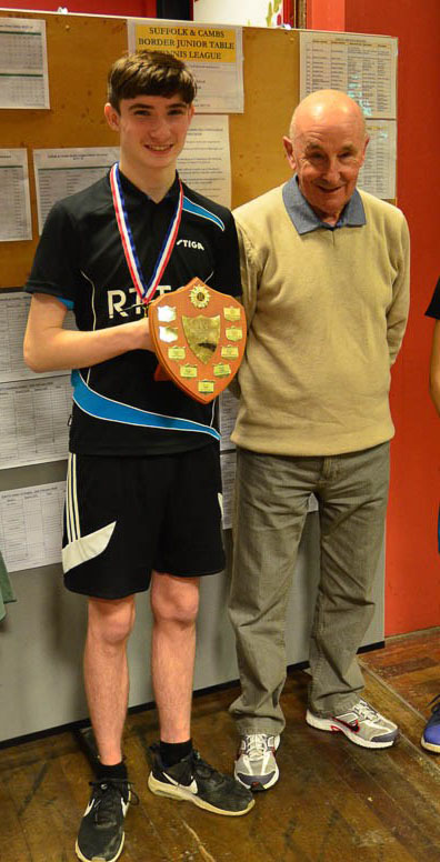 At the AGM of the Bury St Edmunds and District Table Tennis League Rougham TTC member Aidan Stibbs was awarded the 2019 Nigel Jepson Memorial trophy as the Junior Player of the Season.