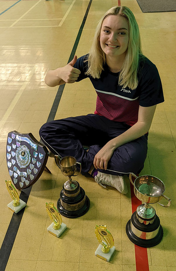 At the County seniors event Isobel McGerty was Mixed doubles winner and Woman’s singles runner up. She then went on to retain her Women’s, Juniors and Mixed Doubles titles at the Bury St Edmunds League Championships. Ruby Williams also competed strongly and scored a hat-trick of runners-up trophies with the Division 3 singles final being a particularly close match. A full round-up results from the Championships can be found at: https://burystedmunds.ttleagues.com/article/2021-22annualchampionshipsresults